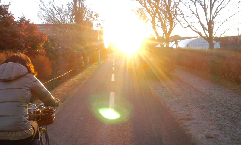 高速道路を移動中。その移動中に太陽も出てきたよ!